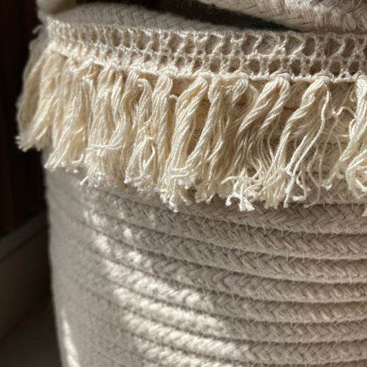 Cesto de algodão com franja 30x30