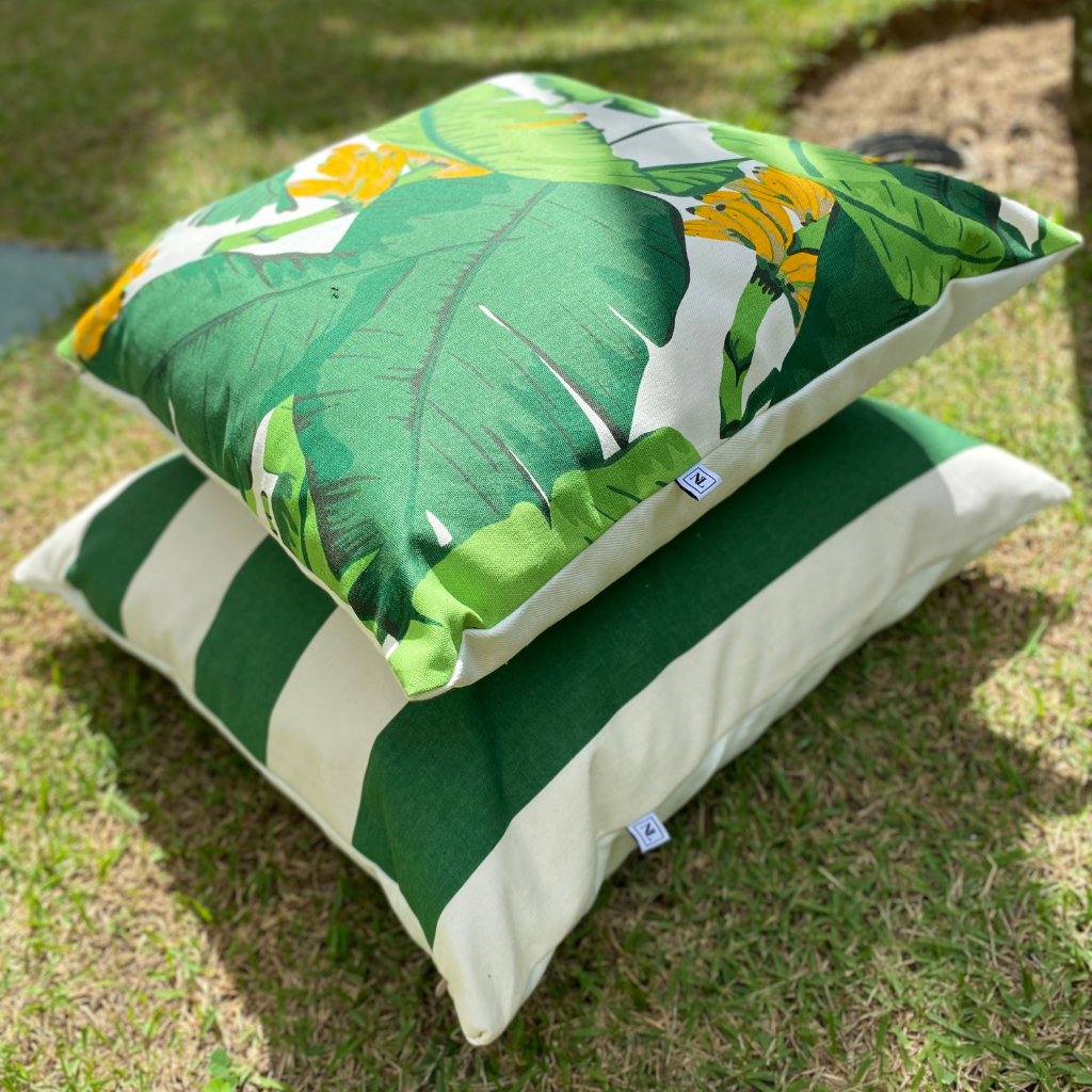A coleção Brisa Tropical traz capas de almofadas com estampas vibrantes e...