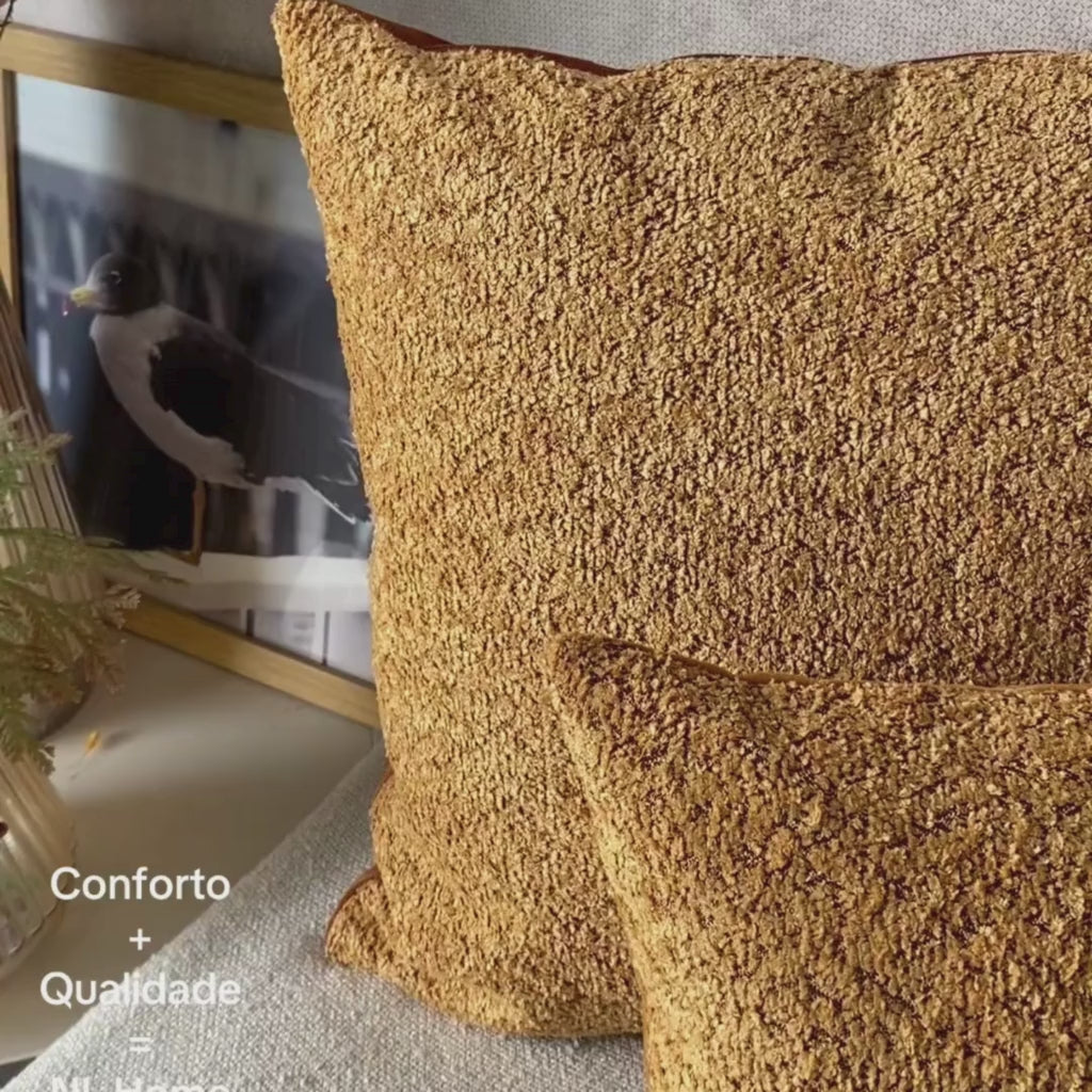 • Material Exterior: Frente bouclé Prmium Terra e verso em veludo terra